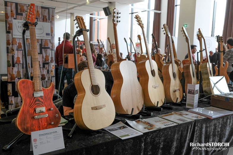 Précisons que le LWC n’a pas été présenté à cette 6ème édition avec pour message d’arrêter d’utiliser des bois tropicaux pour nos guitares. Pour preuve, il y avait plus de guitares tropicales que non tropicales à ce salon et le fournisseur de bois Madinter exposait des bois tropicaux pendant qu’à l’autre bout de la salle, Le Bois de lutherie présentait des bois non tropicaux.
