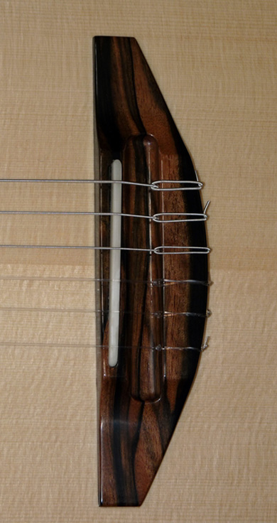 - Ouïe sur l'éclisse supérieure avec trappe en cuir et bouton en ébène