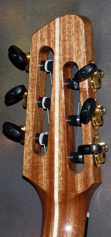 Sur cette guitare d'allure folk, le barrage de la table est un éventail asymétrique à 7 brins.