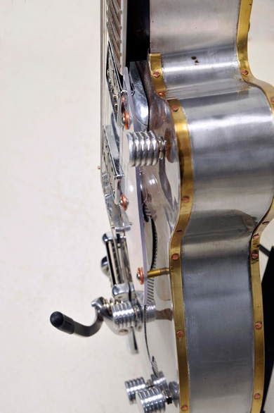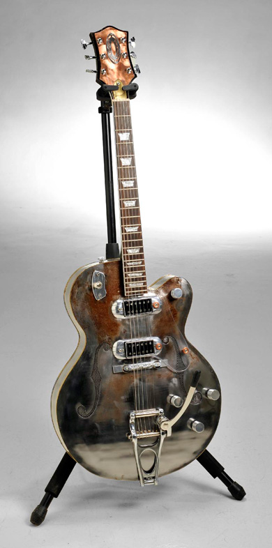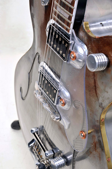 IRON GUITAR EST LE RéSULTAT D'UN IMAGINAIRE CRéATIF ORIGINAL, DE LA PASSION DES MéTAUX ET DE LEUR POTENTIEL SONORE."