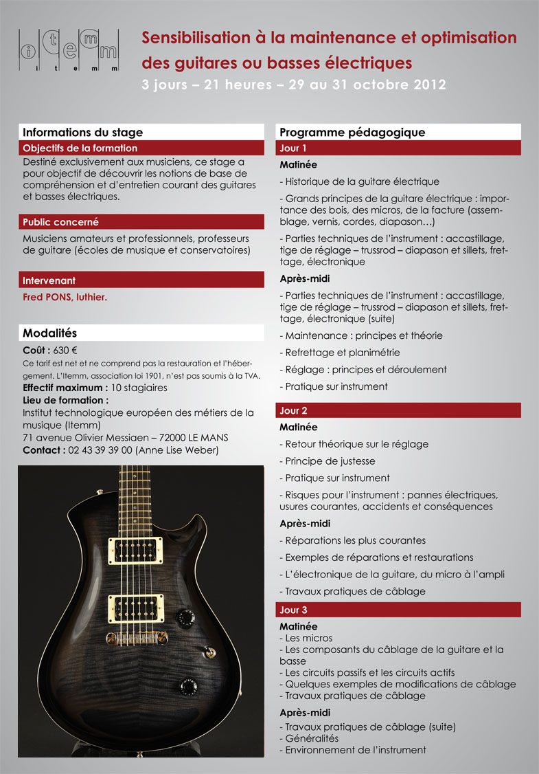 | Stage de réglage des guitares acoustiques et électriques | |  |  |