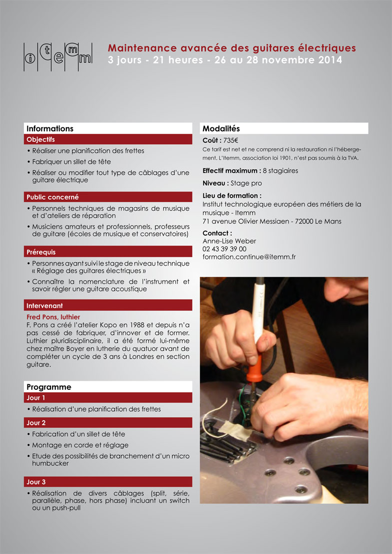 | Sensibilisation à la maintenance et optimisation des guitares ou basses électriques | |  |  |