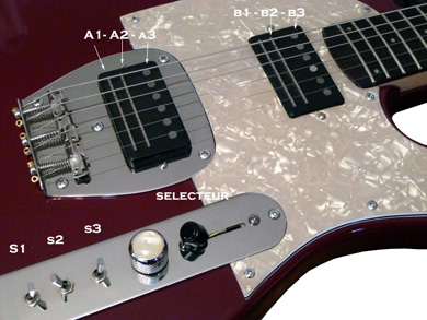 Switch 3 (on-on-on) on coupe une bobine real position neck, centrale posive; deuxiéme on coupe une bobine micro reall position chevalet