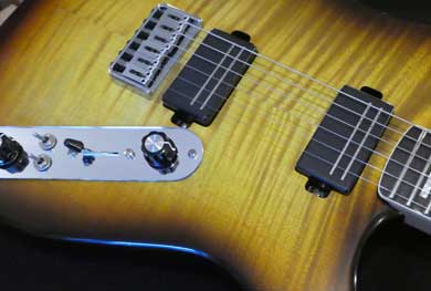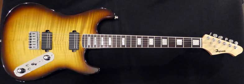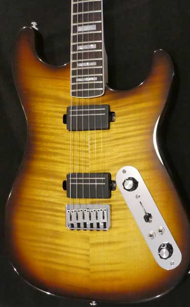 Cette guitare a un son lumineux dans les fréquences mediums sans la perte de niveau de son quand on passe du double bobinage au simple bobinage sur chaque micro. Les micros sont actifs avec de beaux bas mediums qui se marient bien avec la résonance du corps en merisier qui lui donne une bonne présence des hauts mediums. Instrument polyvalent avec un manche confortable.