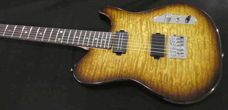 Cette guitare a été fabriquée pour une utilisation facile et efficace. Les deux micros actifs sont sensibles et puissants. Excellent en son clair, crunch et saturé. Le manche en érable ondé est pratique et facile à jouer dans toutes les positions. Il se marie très bien au corps en acajou qui donne une résonance chaleureuse.Cette guitare peut satisfaire les musiciens jouant différents styles.