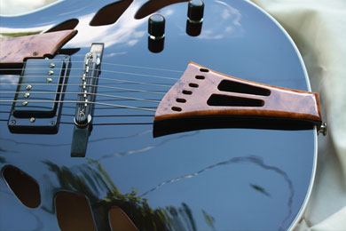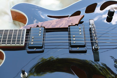 - 3-piece laminated curly maple neck, 1¾ in. nut width