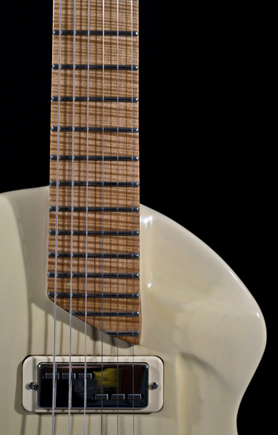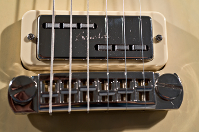 Les micros Benedetti que Jean-Yves a souhaité mettre sur cette merveille ont été spécialement conçus à sa demande par Nicolas Mercadal. Deux minis humbuckers