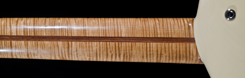 Le manche d'une pièce en érable ondé est traité dans une sorte de 'old smoked finish'.....n'oublions pas que nous sommes en 1952...".