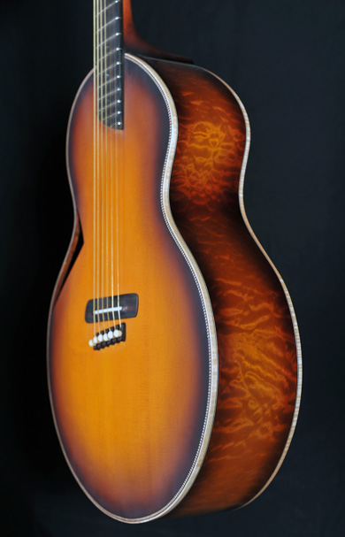 - Dos et éclisses : érable pommelé, finition sunburst brillant;
