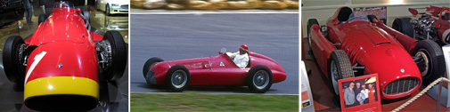 Le rapport entre ce modèle fastback et Fangio est bien sûr la couleur rouge des bolides qu'il a pu piloter en photos ci-dessous avec de gauche à droite une Maserati 250F, une Afla Roméo Alfetta et une Ferrari D50 née Lancia D50.