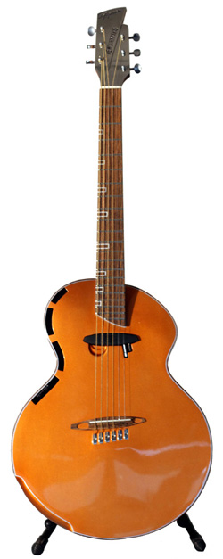 Cette guitare, dont le design est du jamais vu, représente la continuité du travail acharné de Jean-Yves Alquier qui s'impose aux yeux de toute la profession comme LE luthier français le plus novateur dans le design des guitares, acoustiques à cordes acier, nylon ou électriques.