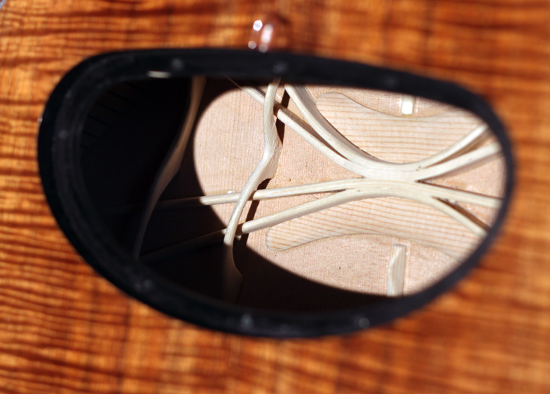 Le barrage interne est un barrage en X de conception personnelle dont les branches se divisent en se chevauchant. A la base, il s'inspire des roues de char de l'Egypte antique (nouvel empire) dont la caractéristique physique était la légèreté, la souplesse et la solidité. Trois éléments majeurs en lutherie.