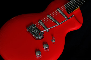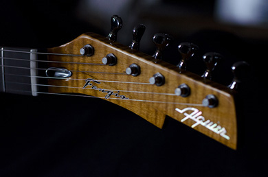 - Modèle fastback custom, corps en aulne 1 pièce, manche acajou, touche en pao ferro.