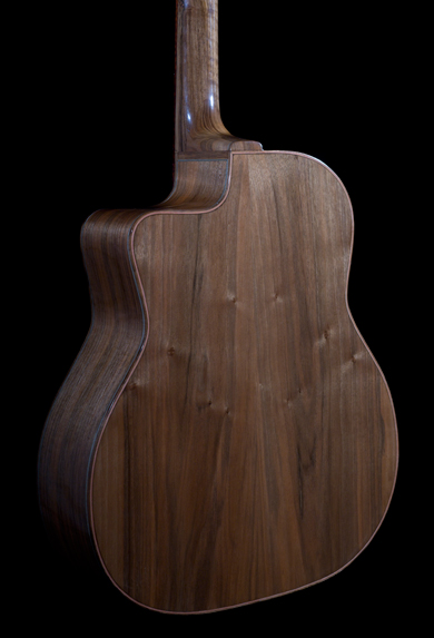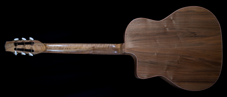 Le modèle présenté à Graines de Guitare est une épicéa/noyer avec manche en noyer. De dos cette manouche est particulièrement séduisante.