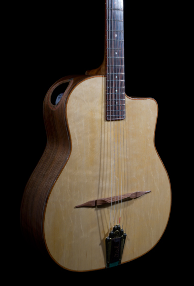 Si "Osé" signifie pour Jeff et ce modèle : "Ouïe sur éclisses", il est particulièrement osé de proposer un tel instrulent dans la guitare manouche.