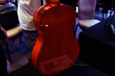 manche est en cédro, la table en vielle épicéa, la touche le placage de