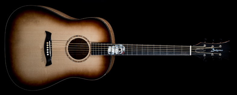 J'attendais avec impatience de jouer sur cette guitare folk que Jérôme Dussenne a spécialement réalisé pour Graines de Guitare. Malheureusement, je n'ai pas eu le temps de m'isoler un instant et de l'essayer.