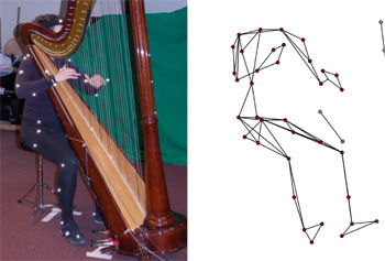 ... Les résultats issus de la courante étude expérimentale de l'interaction entre le harpiste et son instrument permettront ainsi d'intégrer les paramètres avérés pertinents vis-à-vis du son produit au sein de modèles de pincement de corde. Ceux-ci se sont jusqu'à présent principalement orientés vers des excitations au plectre ou à l'ongle, systèmes mécaniques plus aisément descriptibles qu'un doigt humain. Le modèle d'interaction sera validé par un doigt artificiel, actuellement mis en place, capable d'exciter la corde de manière réaliste, suivant par exemple une trajectoire mesurée sur un musicien.