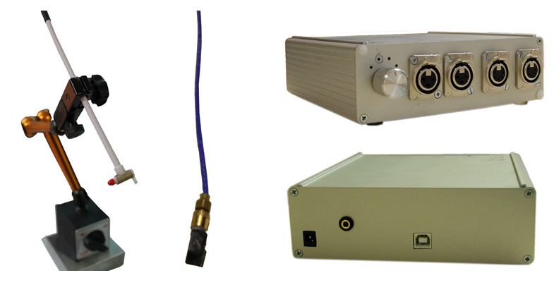 Ces deux capteurs, accéléromètre et marteau de choc, sont reliés à un boitier d'acquisition de données, lui même relié à un ordinateur et un logiciel libre développé pour l'occasion qui permet d'interpréter la mesure enregistrée. Afin de valider l'information, plusieurs essais peuvent être réalisés pour une même mesure.