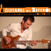 Julien nous présentait à Isssoudun son modèle 8 cordes. Attention, il ne s'agit pas de 8 cordes indépendantes mais de 6 cordes dont deux doublées. Je vous ai déjà présenté en banc d'essai un modèle similaire avec 7 cordes, où c'est le G qui est doublé à l'octave.