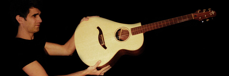 Cette année à Guitares au Beffroi, Julien nous présente un modèle Newbird dont il a revu le barrage et qu'il présentera en modèle gaucher et droitier.