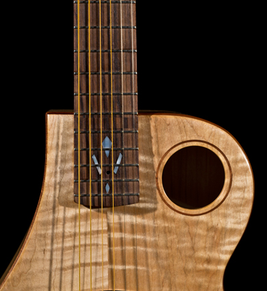 Elle adopte la même forme que la Newbird "petit modèle", mais avec une jointure à la 14ème case... Contrairement à la plupart des guitares à résonateur en bois, la Newphonic est contruite en bois massif. Le résonateur est la partie la plus importante de cet instrument, c'est lui qui donne naissance à la vibration acoustique et qui lui donne toute sa vie. En complément d'une lutherie massive, j'équipe la Newphonic avec des résonateurs fabriqués à la main par Greg Beeton."