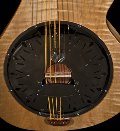 "La Newphonic est une guitare à résonateur de type "national", dont le corps asymétrique est en bois.