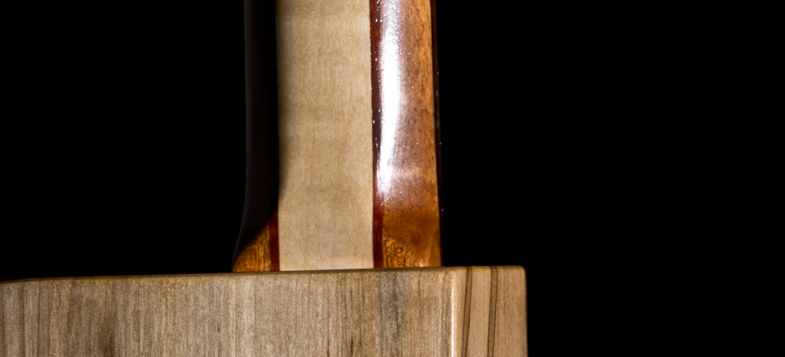 Manche 5 plis : érable ondé / padouk / acajou