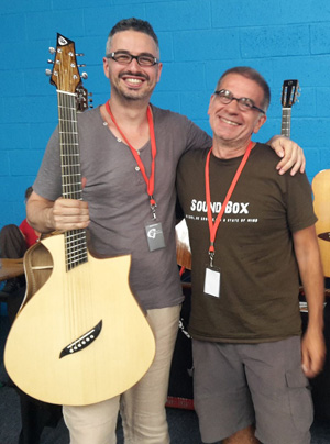 Lors de cette troisième édition, le guitariste Shaï Sebbag, programmé pour un concert et des démonstrations, a eu l'occasion d'essayer bon nombre de guitares folks mais c'est le modèle Baryton de Franck Labarre que ses mains ont décidé de ne plus lâcher.