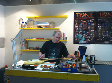Le concept qu'a lancé Dominique lors l'ouverture de son atelier en novembre 2010 est simple : le guitariste vient le matin déposer sa guitare pour une réparation ou un réglage et la récupère le soir même ou le lendemain matin. Ce délai "speedy Gonzales" ne concerne pas le refrettage (2 à 3 jours de délai) et autres réparations lourdes, bien sûr.