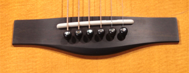 Le chevalet en ébène est un chevalet classique de chez Dupont que l'on retrouve sur tous ses modèles folks (sauf sur les 000 et les Auditorium).