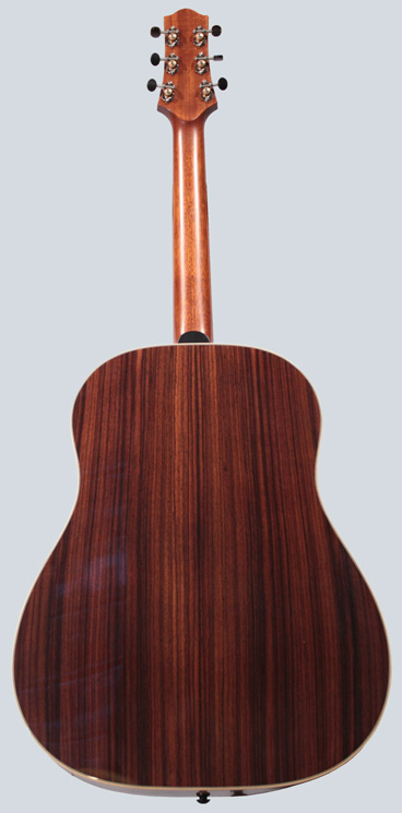 Contrairement aux premiers modèles J-45 et J-50 de chez Gibson qui étaient en acajou, les éclisses et le dos de l'AJ-30 sont en palissandre indien qui est ici, superbe. L'absence de filet de dos est un choix judicieux, laissant l'exclusivité aux veines de cette magnifique essence.