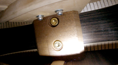 Pour éviter ce travail risqué et coûteux, Maurice préfère visser cet assemblage afin de rendre ce genre d'intervention plus facile et moins risquée pour la guitare..