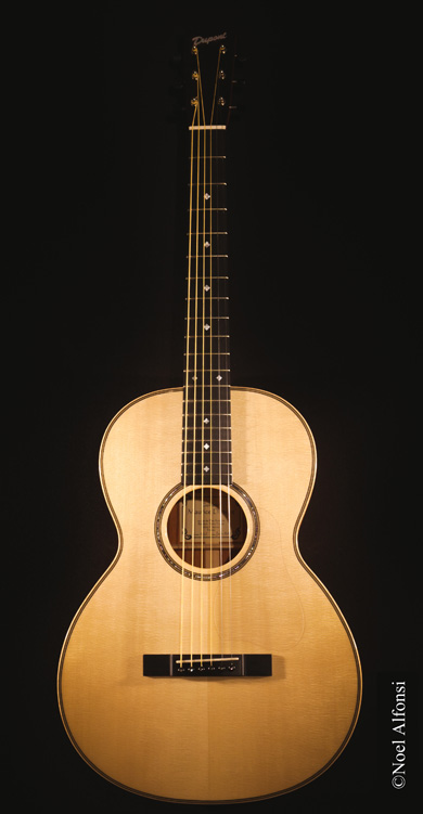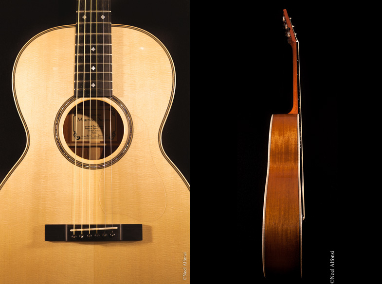 C'est tout d'abord la dynamique qui surprend, ainsi que la rapide projection d'un son droit et extrêmement précis. On reconnaît instantanément le son typique des Parlor lié à leur volume de caisse. Moins généreuse dans le « gras » qu'une guitare plus imposante, elle est plus présente et très puissante. Même si elle ne craint pas le médiator, le jeu au doigt est tellement sublime qu'on le favorisera tout naturellement. Bien équilibrée, elle nous subjugue encore plus avec un sustain interminable ! Le Blues est sa maîtresse de prédilection mais elle assumera bien des infidélités de styles pour peu qu'on en maîtrise les spécificités (Finger-styles, Jazz, même le Manouche). En folk, la corde de « G » vibre d'un son boisé et compressé qui en inspirera plus d'un. Le strumming devra être bien maîtrisé car cette guitare ne se joue pas comme une 14 cases d'un volume de caisse plus important.
