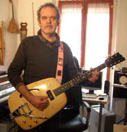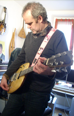 Un joli jour de printemps je suis allé à Besançon avec ma vieille Danelectro Convertible pour qu’il sente sous sa main ce que j’appelle un manche confortable. Il m’a montré deux bouts de bois ajustés, un clair et un foncé. Il m’a donné une chute de découpe d’érable ondé et je suis rentré à Paris comme un amoureux qui déjà espère.