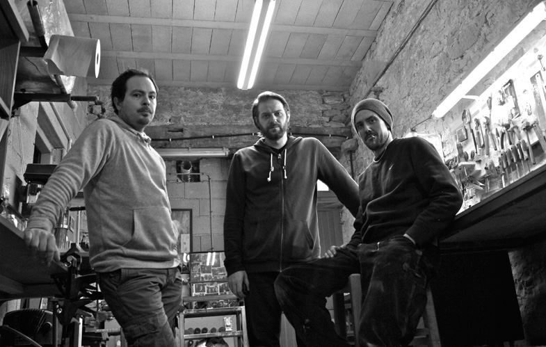 Voici l'équipe au complet de Meloduende, les Meloboys. De Gauche à droite : Jeremy, Cédric et Bertrand. Cédric est le designer de l'équipe tandis que Jeremy et Bertrand donnent vie à la matière.
