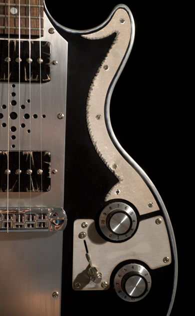 Système de liaison Duende aluminium, finition anodisé Black relic, pickguard alu miroir + alu.