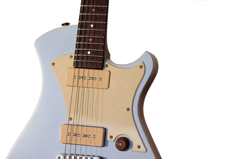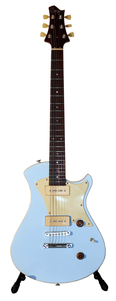 Son modèle Halfbreed dont vous pouvez voir ci-contre une version semi-hollow en sunburst est habituellement proposé en solid-body.