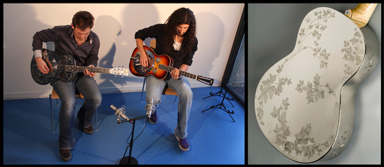 Tout comme pour l’improvisation solo que Brice Delage a faite sur la Mécano Fine Resophonic, vous allez découvrir un duo de deux guitares à résonateur… Duo dans une couleur musicale sur laquelle on n’attend pas des instruments à résonateur. Preuve une fois de plus (s’il en est) que les instruments à résonateur sont beaucoup plus polyvalents que ne veut nous faire croire l’imaginaire collectif.