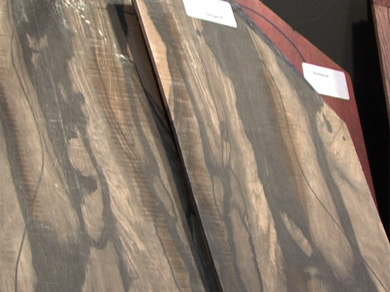 C'est le cas de Maderas Barber dont le siège est à Valence en Espagne. Cette société fournit des essences aux grandes marques comme Yamaha, Martin et Fender mais aussi beaucoup de luthiers artisans. Sur le stand de Maderas, on peut voir de magnifiques pièces d'érable, de cocobolo, de palissandre de Madagascar, des épicéas, des cédres, des ébènes, bref, tout pour réaliser la guitare de ses rêves !