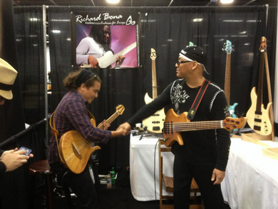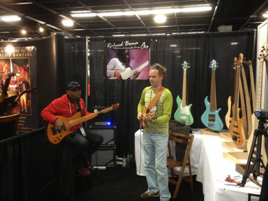 Si l'objectif premier pour un luthier lors d'un salon est de vendre, il n'est pas le seul but à se fixer surtout dans ce type d'expositions internationales comme le Namm qui est l'occasion pour le fabricant, qu'il soit petit ou gros, de trouver des distributeurs et/ou des magasins spécialisés prêts à commander un certain nombre d'instruments.