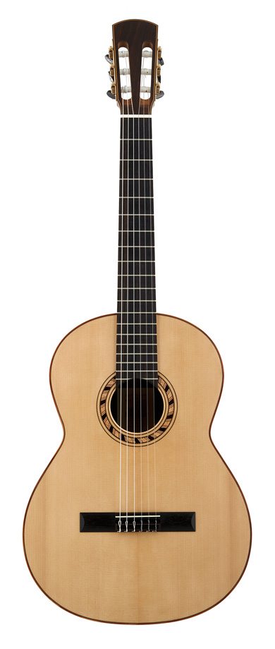 - Manche : Acajou du Honduras, renforcé d'une barre d'ébène centrale incluse.