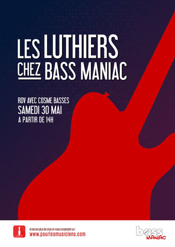 Bassiste passionné de longue date, Patrick Cosme a reçu la Bourse de l'Innovation en 2011. Il propose des créations totalement artisanales et innovantes. Fabriquées avec des bois minutieusement choisis et le souci du détail, elles garantissent une qualité sonore optimale. Tous ses modèles sont customisables (essence de bois, accastillages, électronique…). Il propose aussi des réalisations sur mesure adaptées au désir de chacun. Bass Maniac accueillera Patrick Cosme pour cet atelier autour du métier de luthier. Tous les secrets de fabrication de ses basses vous seront dévoilés… Ne manquez pas ça !! Bass Maniac : 17 rue de Douai, 75009 Paris - Métro Pigalle / Tel: 01 53 21 91 19