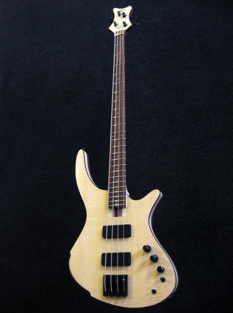 Avec son corps en Acajou et en Erable, sa table plate en Erable ondé soulignée d'un bending en Ebène, elle est équipée de deux micros 'Soapbar Quad Coil' Delano, d'une électronique 3 bands John East et d'un accastillage ABM et Gotoh.
