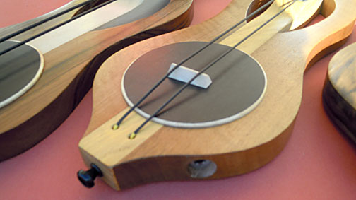 J'avais déjà repéré sa basse à deux cordes lors du salon des Internationales de Montpellier. Le succès rencontré par cet instrument (3 vendus lors du salon d'Issoudun) est à l'image de sa jouabilité qui est ludique, simple et passionnante.