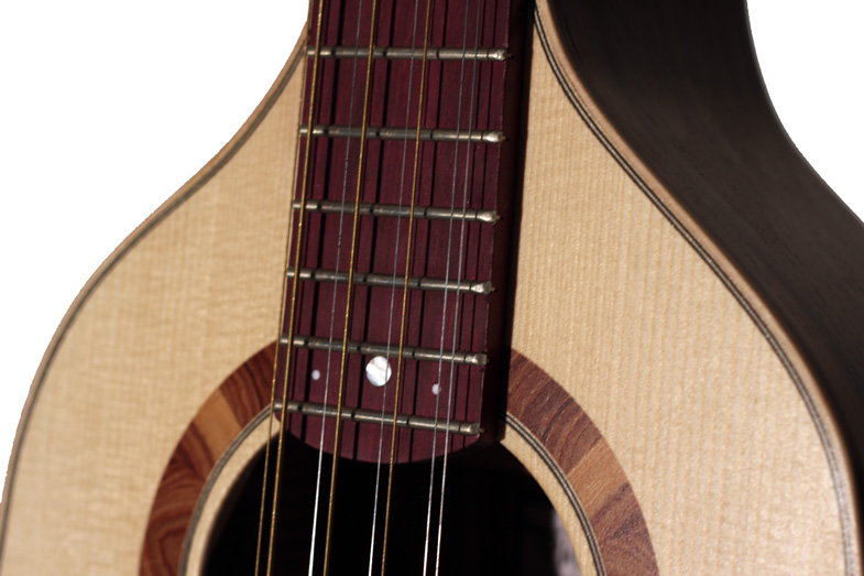 Il est également possible de l'accorder comme un octave mandoline GDAE et ainsi de bénéficier de magnifiques basses que lui confère la caisse et la table d' harmonie (en épicéa de grande qualité).