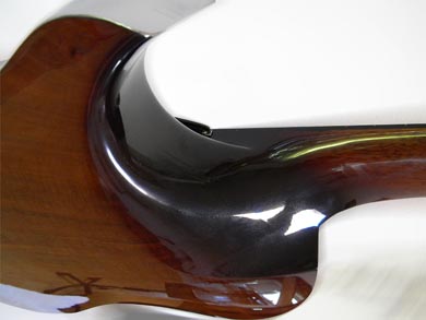 Venu tout droit de l'ïle de la Réunion, Philippe Clain surprend avec une lutherie originale dans le design mais également dans l'utilisation de bois locaux comme le Tamarin et le Badamier.