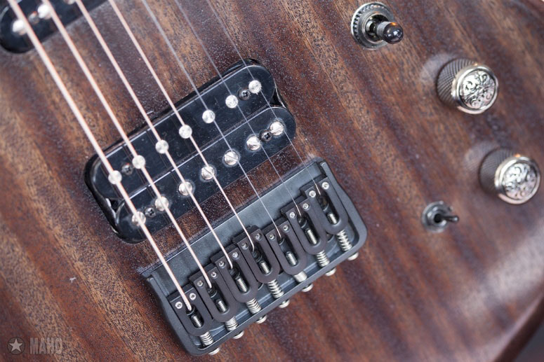 Comme toutes les guitares PMC, les mécaniques sont incrustées dans la tête complètement droite avec 2 tiges de renfort en carbone et un truss rod double action à barillet, dont l'accès se fait entre les deux dernières frettes.