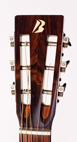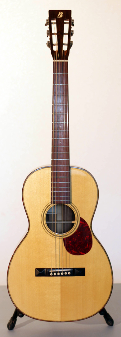 En effet, Pierre s'est inspiré du plan d'une Martin 1-18 des années 30 qui était a l'origine montée avec des cordes en boyau sur laquelle il a modifié le barrage ainsi que l'épaisseur des bois afin qu'elle supporte la tension des cordes acier.