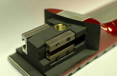 Le manche, en trois parties, est fixé au corps par un système de rails (voir photo) ce qui permet des réglages et un entretien bien plus aisés.